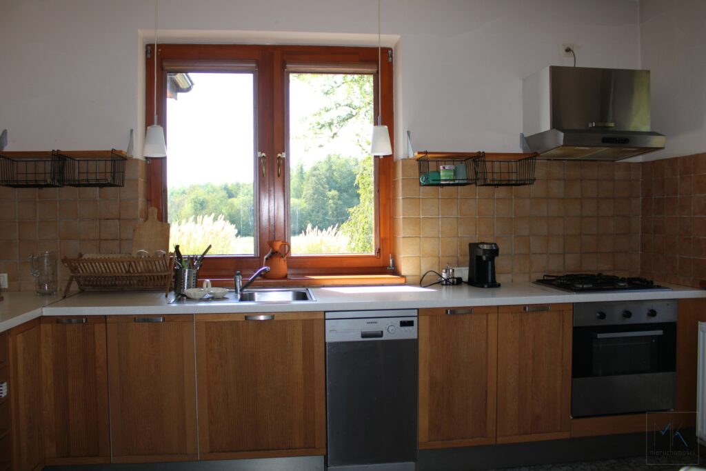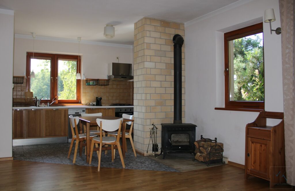 – przestronny salon z kominkiem połączony z kuchnią, to idealne miejsce do wspólnego spędzania czasu i relaksu,