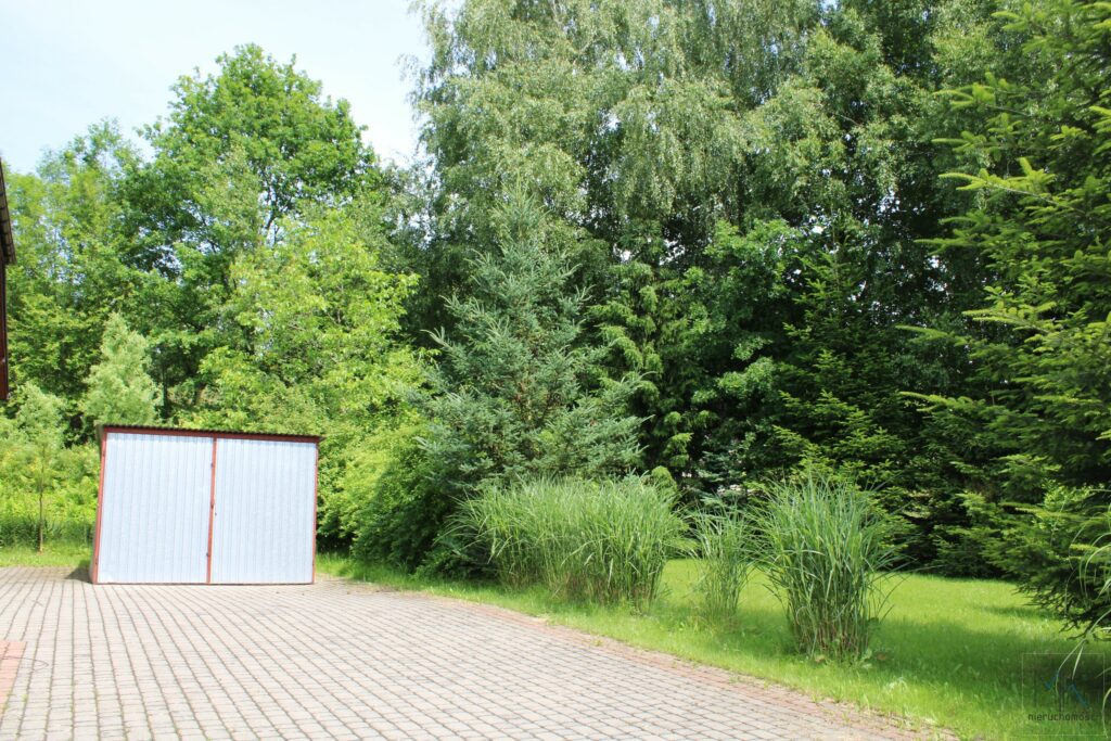– blaszany garaż oraz miejsca parkingowe na podjeździe,