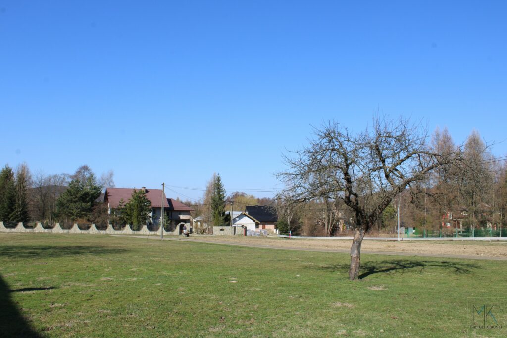 Lokalizacja nieruchomości łączy w sobie sielski spokój z codzienną wygodą. W promieniu zaledwie kilkuset metrów znajdują się kluczowe punkty infrastruktury, takie jak szkoła, przedszkole, sklep spożywczy oraz przystanek komunikacji zbiorowej. Miłośnicy aktywnego wypoczynku docenią bliskość dużego kompleksu leśnego u podnóża Góry Kamiennik, do którego można dojść krótkim spacerem. Jednocześnie Myślenice znajdują się w odległości 9 km, co zapewnia szybki dostęp do pełnej infrastruktury miejskiej oraz dobrej komunikacji z Krakowem.